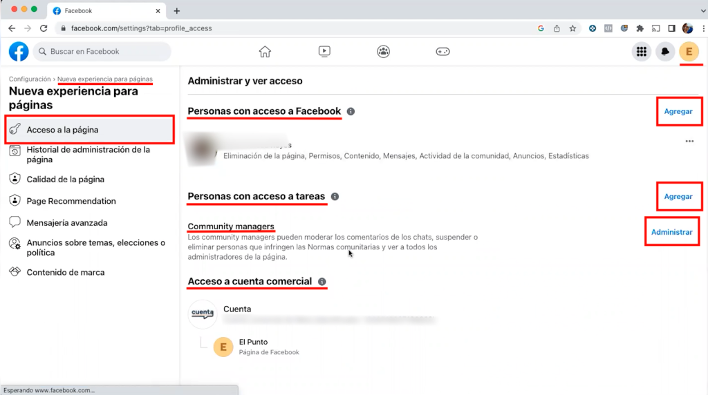 - Acceso a página de Facebook: este perfil te permite acceder y editar la página, pero no te da acceso a tareas específicas ni a la cuenta publicitaria.