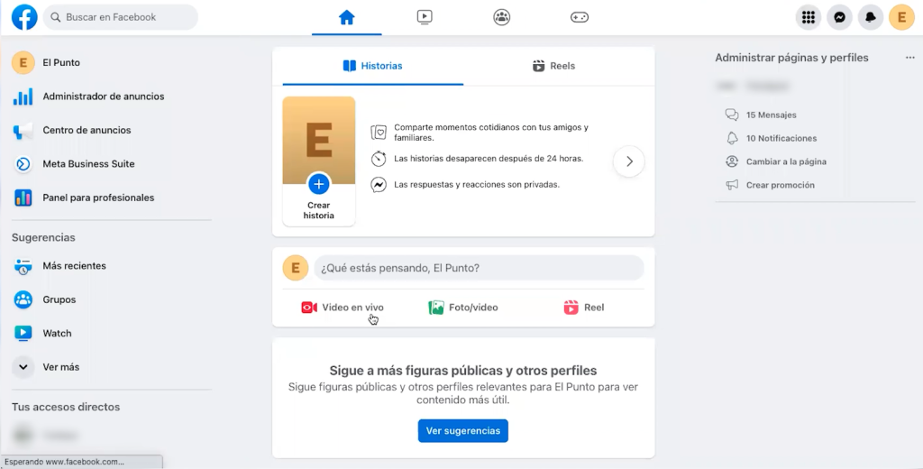 Una vez que hayas iniciado sesión en tu cuenta de Facebook, verás la sección de páginas en la barra lateral izquierda de tu pantalla. Haz clic en la sección de páginas para ver todas las páginas que has creado o administras. Si solo administras una página, te llevará directamente a ella.